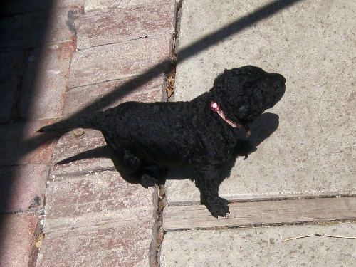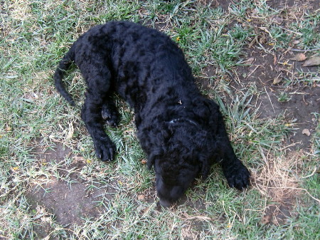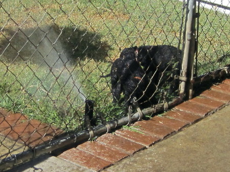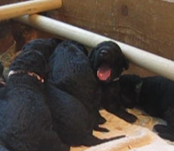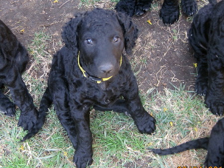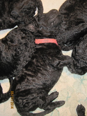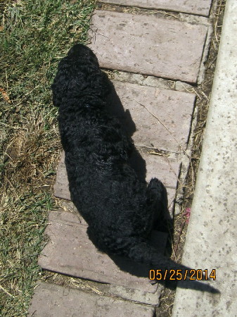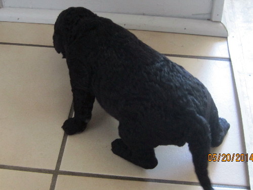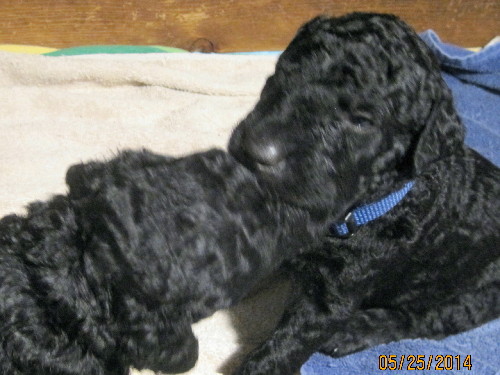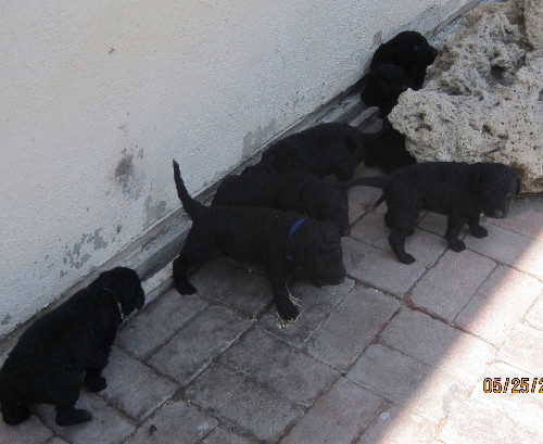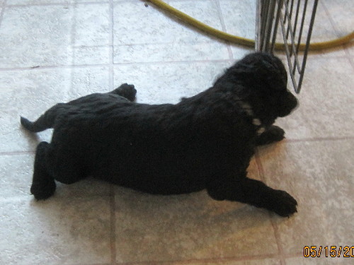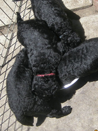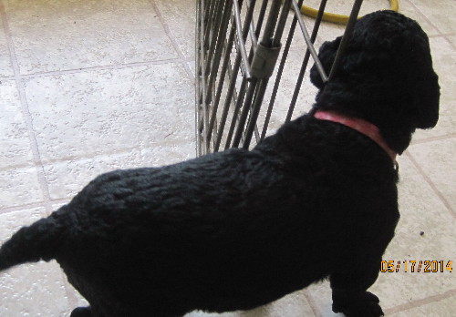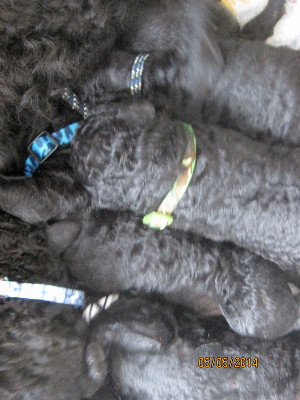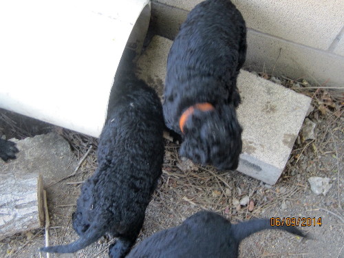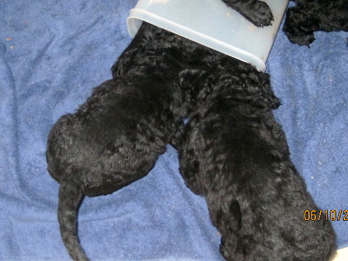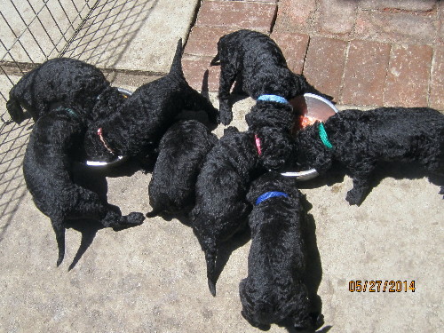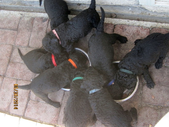 May 27th - eating big puppy food out of big puppy bowls. Some of the pups are better at sharing than others ...