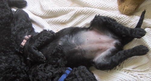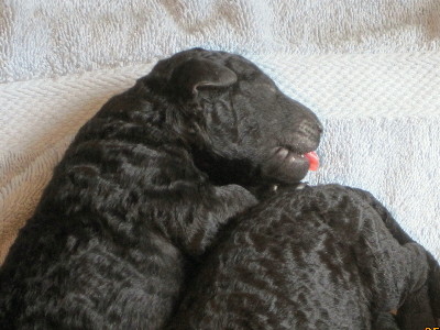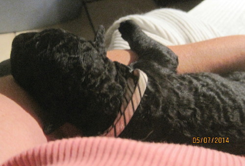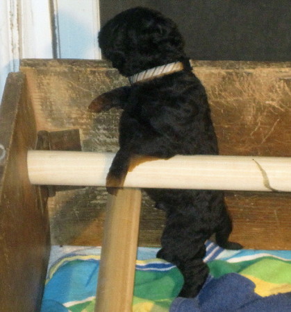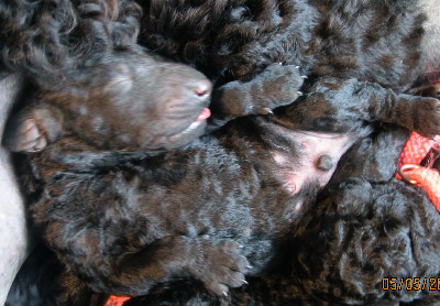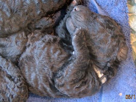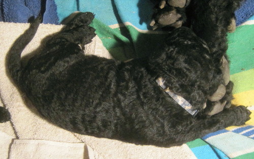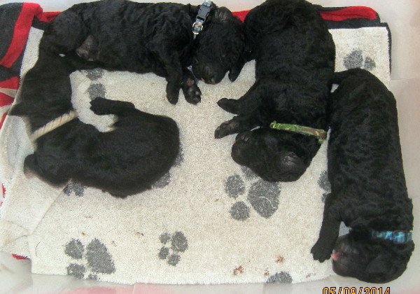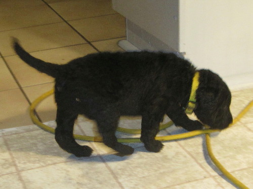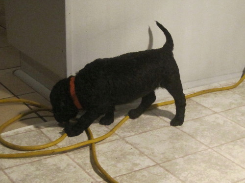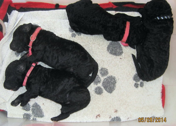 The pups celebrated their three week birthday by going outside for the first time, and a good play session indoors.