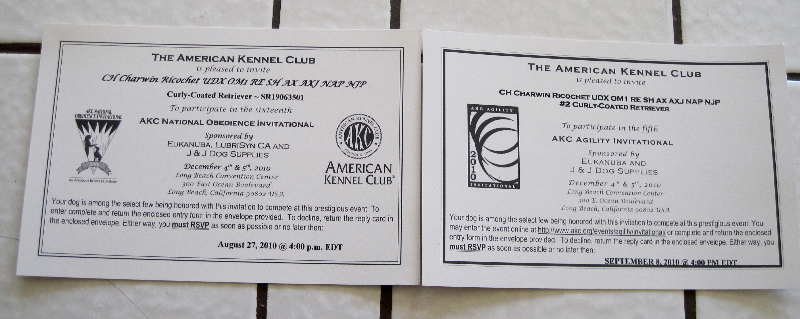 Aug 1 - Dodger gets his obedience and agility invites. ![]() Aug 21 - Dodger wins Third in Utility B Aug 22 - Dodger wins Second in Utility B for 1 point. Aug 28 - Teaz wins Second in puppy group at her first show...at a match...out of three ;-) Aug 29 - Bing wins another point.