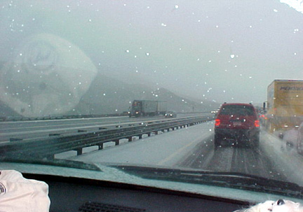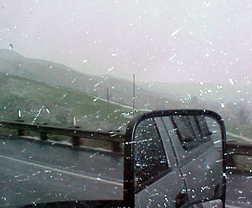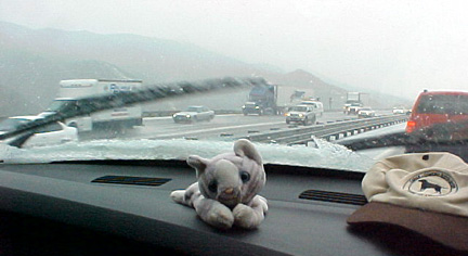 We drove to Fresno and found snow (!) on the Grapevine.
