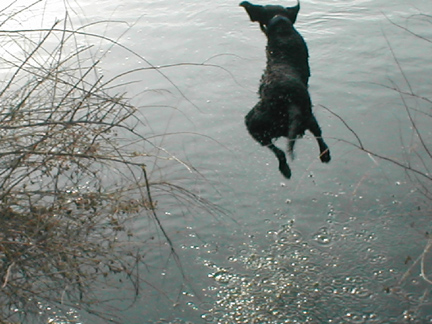 On the way home, Dodger got to swim in the river next to Lost Hills - he really likes that!