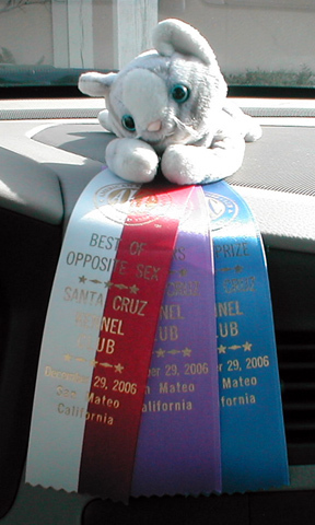 We drove to San Mateo and Lucky Kitty watched as Dodger finished his Ch!