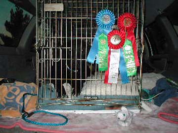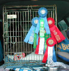 The next day Lucky Kitty helped Dodger finish his NAP with First Place - here they are with the weekend's loot.
