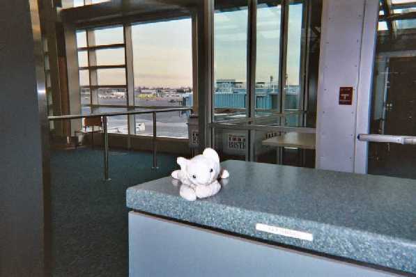 We made a trip to Canada - here is LK waiting in the airport...and waiting and waiting....
