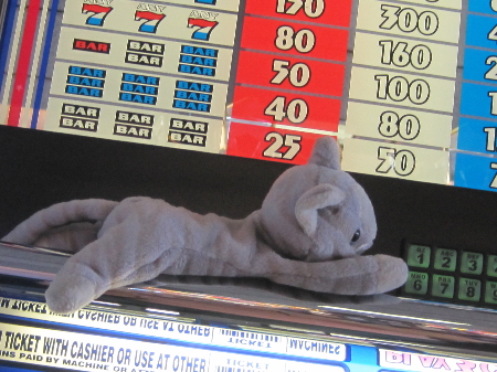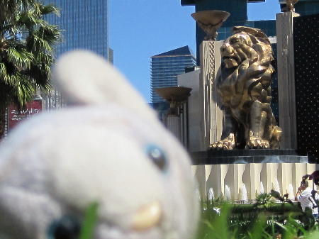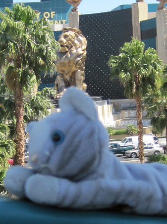 LK isn't allowed to help us play table games, so I took her to meet her distant cousin, the MGM lion.