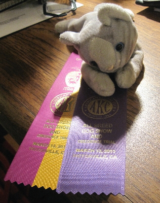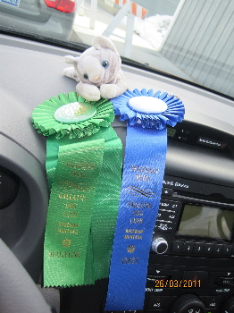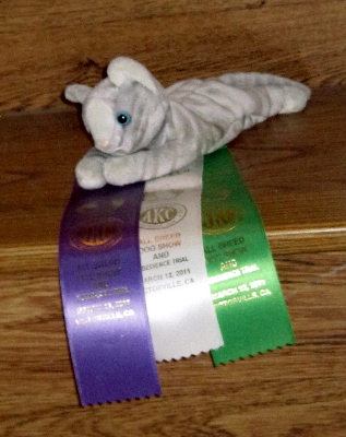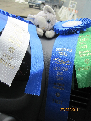 THEN we had to win another runoff to win High in Trial! Here Lucky Kitty poses with all the loot from the weekend.