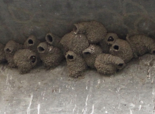 On the way home, I took pictures of this plant full of seed pods, and swallows' nests on an overpass. You can see a couple