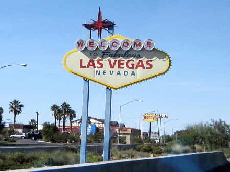 The famous Las Vegas sign is actually on Boulder Highway, not far from Sam's Town, and not on the Strip.