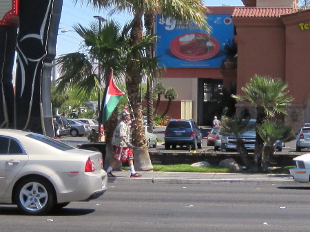 Las Vegas is a weird place. This guy was blowing a whistle and yelling something - I assume he was