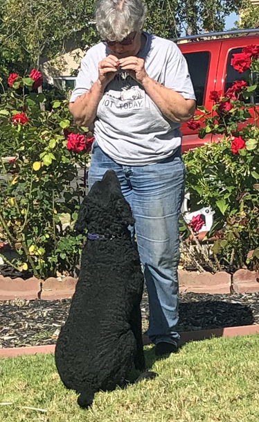Cracker has learned if he sits, someone will throw him a bird. Now he needs to learn where to sit!