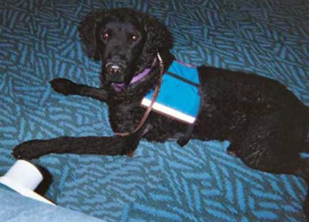 | One of the most important things Diver does is act as my service dog. Since 2003, the winters have been very difficult for me to get around. He is great at this job too, tho he does have trouble ignoring someone that might want to pet him! ;-)