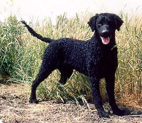 In the show ring (now retired), Diver was Winners Dog at the 1995 CCRCA National Specialty and a multiple Group placer. In the field, he has a leg on his MH and was the first Curly to earn the MHR & GMHR. He was CCRCA Field Dog of the Year in 2000, co-winner in 2001 & winner in 2002. Due to an accident that took half his hearing, he had to retire from the field and start a new career - in obedience, he is a multiple all breed High in Trial winner and was HIT at the 2000, 2002, 2003 & 2004 CCRCA National Specialties. He was the CCRCA Obedience Dog of the Year in 2002 & 2004 and Top Obedience Curly in Canada in 2002 & 2003. He has two legs on his Mex UD & one on his UKC UD, and recently became the 4th OTCh in the breed. He is also dabbling in tracking, rally and agility training, earning placements on almost all of his agility and rally titles. Divers page is here.
